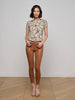 Our iconic cropped skinny jean, constructed with super stretch coated denim for all-day ease and designed with a contoured waistband that hugs the natural waist without gaping. Now in our cognac leather-alternative coated denim.