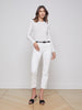 An essential cropped jean with an effortless, relaxed fit in clean white. High-rise, five-pocket design is cut from premium stretch denim that holds its shape while providing supreme comfort. Slim straight leg gently drapes to a raw hem.