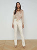 A sleek, slim bootcut, fitted through the hips and knee, built with a contoured waistband that securely hugs the natural waist without gaping. Now back in a neutral leather-look coated denim.