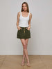 Hammered gold buttons put a glamorous spin on the denim mini skirt. Constructed with a wide waistband, belt loops, and western back yoke detail, the Solene blends clean lines with utility edge.