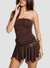 - Silicon strip, pleated hem, zip closure at side, built-in shorts, textured material