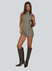 - Round neckline, waist tie fastening, built-in shorts, invisible zip fastening at back